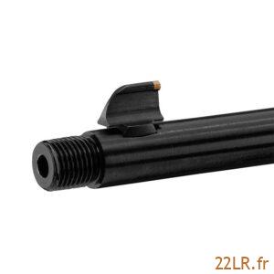 Le canon de 48 cm donne une ligne de visée et une tenue en cible cohérentes pour le tir au stand, tout en restant maniable. Il reçoit un filetage 1/2 »x20 (aussi noté 1/2 »-20 TPI) : ce point conditionne directement la compatibilité avec les accessoires filetés, et il faut le respecter au moment du choix pour éviter tout montage inadapté. La marque Davide Pedersoli signe ici une 22 LR pliante, monocoup et ambidextre, orientée vers une utilisation simple, contrôlée et facilement accessoirisable.
