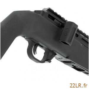 La sécurité repose sur un bouton de sécurité réversible, utile pour adapter la commande, et sur une sécurité automatique de détente, qui ajoute une barrière de manipulation. La détente Drop-In intéresse ceux qui veulent une sensation de départ plus nette et une maintenance plus simple, car ce format se gère comme un ensemble. Pour l’équipement, le rail picatinny autorise le montage de tous types de visées, du point rouge à la lunette, avec des colliers adaptés. Enfin, le filetage de bouche 1/2-28 UNF (1/2″x28) ouvre la porte aux accessoires compatibles, et le calibre s’écrit bien 22 LR pour cette carabine.