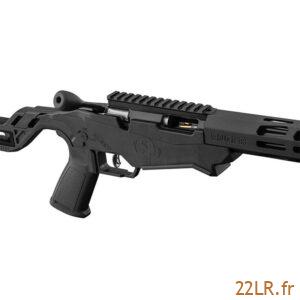 La culasse reçoit un verrou/levier surdimensionné, identique à celui de la carabine Ruger Precision®, pour une manœuvre franche et répétable, surtout quand on enchaîne les séries. Le réglage de course de culasse type Big-Gun permet de passer d’une course de 1,5″ (percussion annulaire) à 3″ (percussion centrale), un détail qui réduit le risque de « court-circuiter » la culasse en compétition quand on travaille vite. En atelier, je vois souvent des incidents d’alimentation qui viennent simplement d’une manœuvre incomplète : une course plus longue et plus lisible aide à garder un cycle régulier. L’ergonomie annoncée droitier va dans le même sens pour la prise en main et la répétition des gestes.
