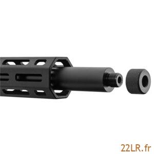 Le canon cible en acier forgé à froid utilise un alliage 1137 et un pas de rayure de 1:16″, un standard cohérent pour stabiliser les projectiles de 22 LR et chercher la régularité. Il mesure 46 (longueur indiquée) et Ruger filete la bouche en 1/2″-28 avec un protecteur de filetage, ce qui protège les filets quand aucun accessoire ne prend place. Un armurier compétent peut remplacer le canon avec des clés de type AR et des jauges d’espacement, ce qui facilite l’entretien évolutif ou le remplacement après un très gros volume de tir. Le montage et le démontage restent des opérations à faire proprement, car l’espacement et l’alignement conditionnent directement la répétabilité.