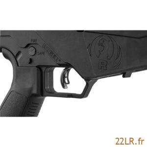 La détente Ruger Marksman Adjustable™ se règle de l’extérieur, avec une plage de traction de 2,25 à 5 lb, et Ruger range la clé dans un compartiment de la crosse. Le réglage permet d’adapter le départ au tir posé (plus léger) ou à un usage plus dynamique (plus ferme), tout en conservant une sécurité intégrée. La carabine intègre aussi un sélecteur de sûreté de type AR, réversible, ce qui facilite l’accès selon la main dominante et la position. Ce sont des points qui comptent réellement en 22 LR : un départ cohérent et une commande de sûreté accessible évitent de perturber la visée au moment du tir.