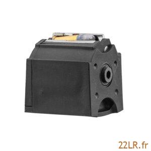 L’alimentation passe par des chargeurs Ruger Magnum Rimfire, et la capacité annoncée atteint 10+1. Ruger ajoute un chargeur supplémentaire JMX-1 de 10 coups, ce qui permet d’avoir immédiatement deux chargeurs pour l’entraînement ou la compétition sans interrompre la cadence. Un cadenas accompagne aussi l’ensemble. Le poids indiqué à 3,1 aide à stabiliser l’arme sur appui, tout en restant gérable pour manipuler et régler la position au poste.