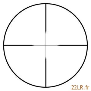 Le réticule 30/30 reste très lisible : barres épaisses en périphérie, centre plus fin pour viser proprement une mouche ou une petite zone de gong. Dans l’usage d’une lunette de tir 22LR, ce type de réticule aide à accrocher vite la cible, surtout sur fond sombre.
