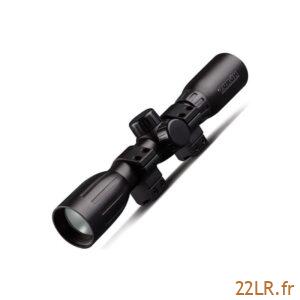 Livrée avec montage 21 mm Caractéristiques : • Grossissement : 4x • Objectif Ø (mm) : 32 • Diamètre du tube (mm) : 25.4 • Réticule : 30/30 • Poids (g) : 320 • Longueur (mm) : 253 • Champ de vision à 100 m (m) : 9.1 • Ajustement par clic à 100m (MOA) : 1/4 • Parallaxe réglable : Non • Calibre maximum supporté : .223 Rem