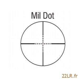 Le réticule Mildot sert à estimer la distance et à gérer les corrections en contre-visée (tenue) : utile pour le .22 LR dès que la trajectoire commence à chuter, ou pour l’air comprimé où la variation de distance se ressent vite. Sur la ligne de tir, ce type de repères facilite aussi la répétabilité d’un tir à l’autre, sans toucher aux réglages à chaque cible.
