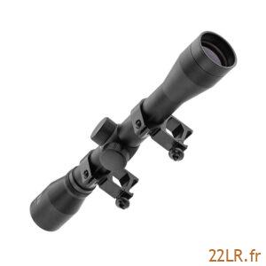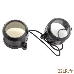 Montée sur des colliers hauts, cette lunette se place directement sur un rail 21 mm type Picatinny. Les 2 colliers de montage livrés pour rail picatinny/weaver 21 mm accélèrent la mise en place et aident à obtenir une hauteur confortable, notamment si la carabine a un canon un peu haut ou si l’on veut dégager la ligne de mire. Une chiffonnette accompagne l’ensemble pour l’entretien courant des optiques.