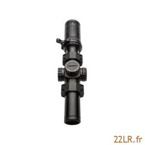 Tube monobloc en aluminium 6061-T6 de 30 mm (qualité aéronautique) : le diamètre de tube offre une bonne marge de réglage et une compatibilité directe avec le montage cantilever fourni. L’ensemble pèse 411 g, un poids cohérent pour une optique 1-6x équipée, surtout avec les accessoires.
