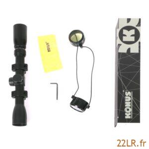 La lunette de visée KonusFire est conçue comme un excellent choix pour les tireurs à la recherche d’un instrument peu coûteux mais fiable, et elle convient parfaitement comme première lunette pour chaque débutant dans le sport de tir. Caractéristiques : • Grossissement : x3 x9 • Objectif Diam. (mm) : 32 • Diamètre du tube (mm) : 25.4 • Réticule : 30/30 • Poids (en g) : 360 • Longueur (mm) : 305 • Champ de vision à 100 m (m) : x3-15.8 x9-13.1 • Ajustement par clic à 10 m (mm) : 7.25 • Valeur de règlage par clic à 100 m (MOA) : 1/4 • Montage fourni : Oui • Pour rail de (en mm) : 11