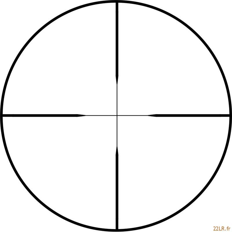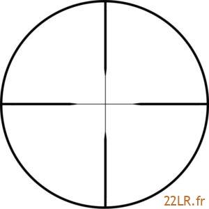 Le réticule 30/30 reste très classique : traits plus marqués vers l’extérieur et centre plus fin, donc acquisition rapide sur silhouettes et visuels noirs, sans surcharge. Dans l’esprit, on est bien sur une lunette de visée 22LR orientée initiation et polyvalence simple.