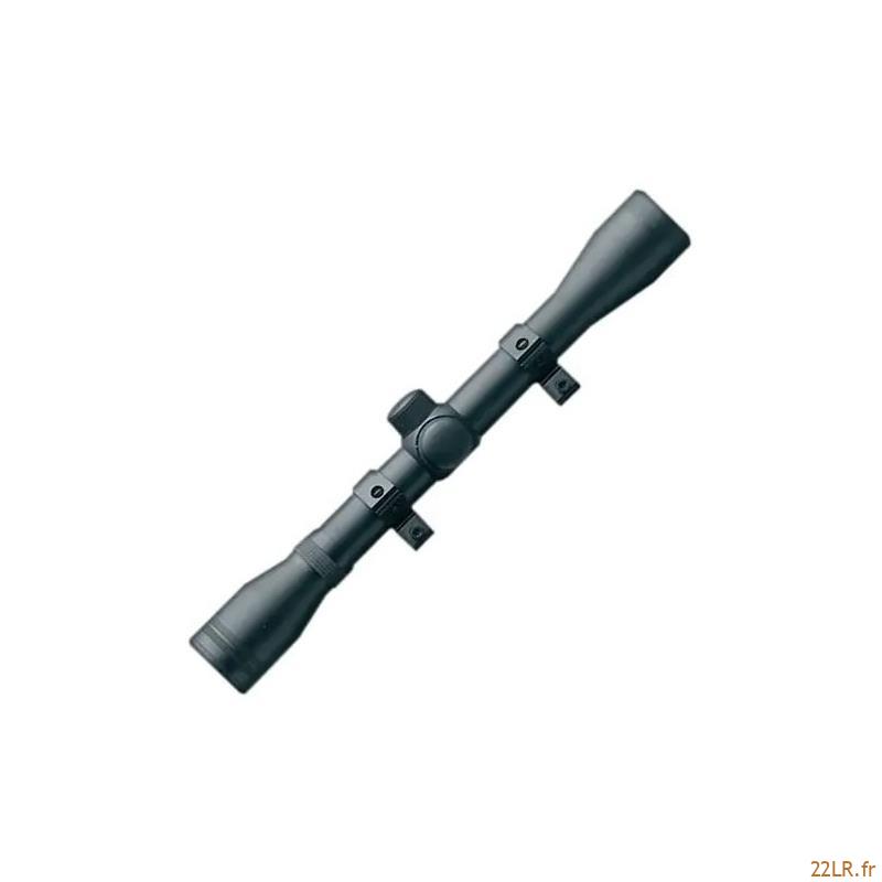 À 50 m sur une .22LR, un grossissement fixe 4x suffit souvent pour tenir un groupement propre sans perdre en rapidité de visée. Ici, on reste sur une optique simple : 4×32, donc une image stable et lisible pour le tir de loisir et la cible à courte/moyenne distance.