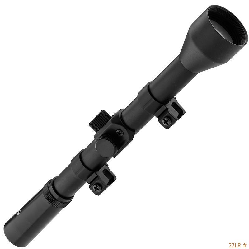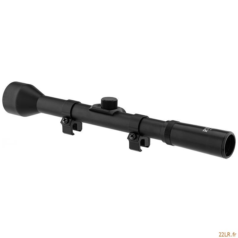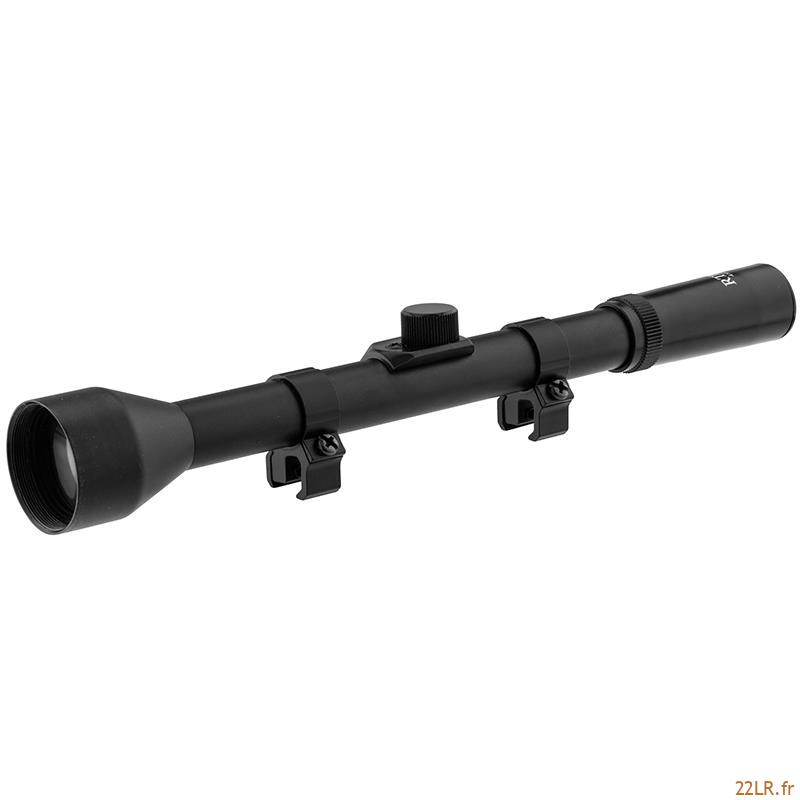 Caractéristiques : • Lunette de loisir pour carabine à air comprimé, livrée avec montage pour rail 11 mm. • Réglable en dérive et en élévation. • Diamètre pupillaire : 7 mm. • Livrée avec deux bonnettes. • Diamètre de l’objectif : 28 mm • Grossissement : x 4 • Longueur : 26,8 cm • Poids : 110 g
