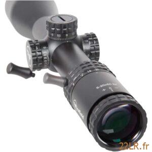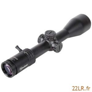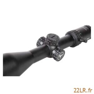 Les tourelles pop-up à verrouillage et les tourelles réinitialisées servent à régler puis sécuriser le zéro : on ajuste, on verrouille pour limiter les dérèglements en transport, puis on peut revenir à une référence claire après réglage. Le réticule au deuxième plan focal garde une épaisseur constante à tous les grossissements, ce qui facilite la prise de visée à faible puissance comme à 20x, avec une lecture identique du réticule.